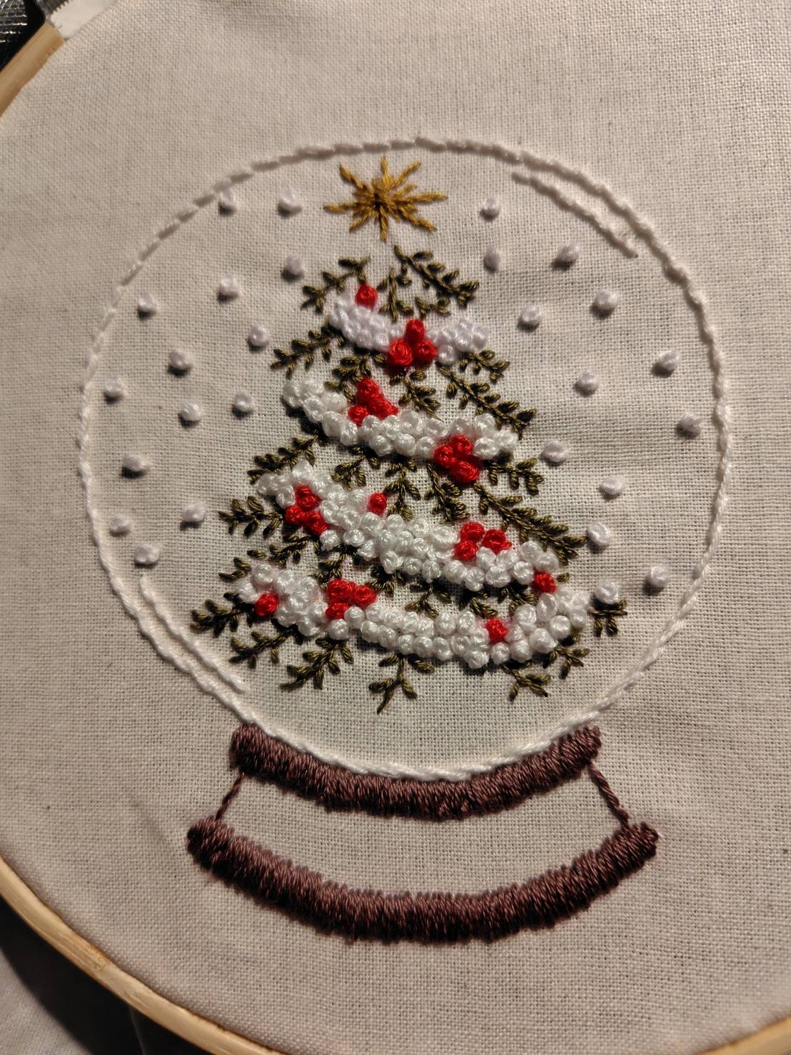 今年の12月に向けて、樋口愉美子さんの暮らしの刺繍にあるスノードームの図案を縫ってみた