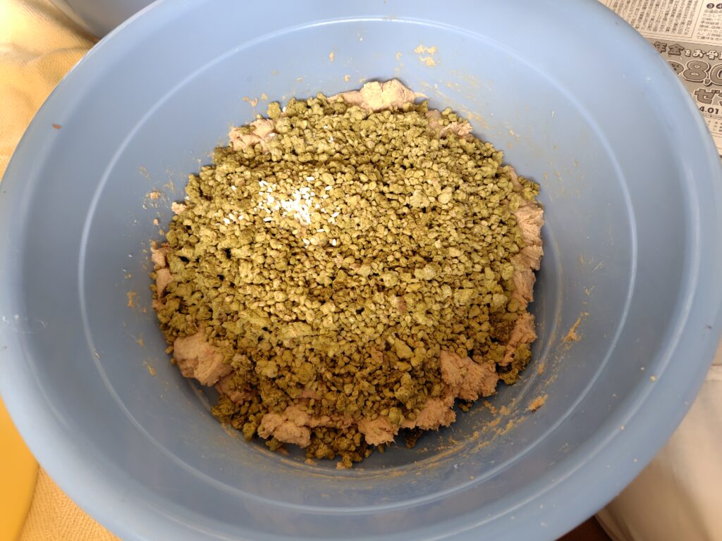 小雪と発酵おばあちゃん(NHKの番組)、でみたことがある “味噌玉” を思い出しながら投げ込むことを意識して完成