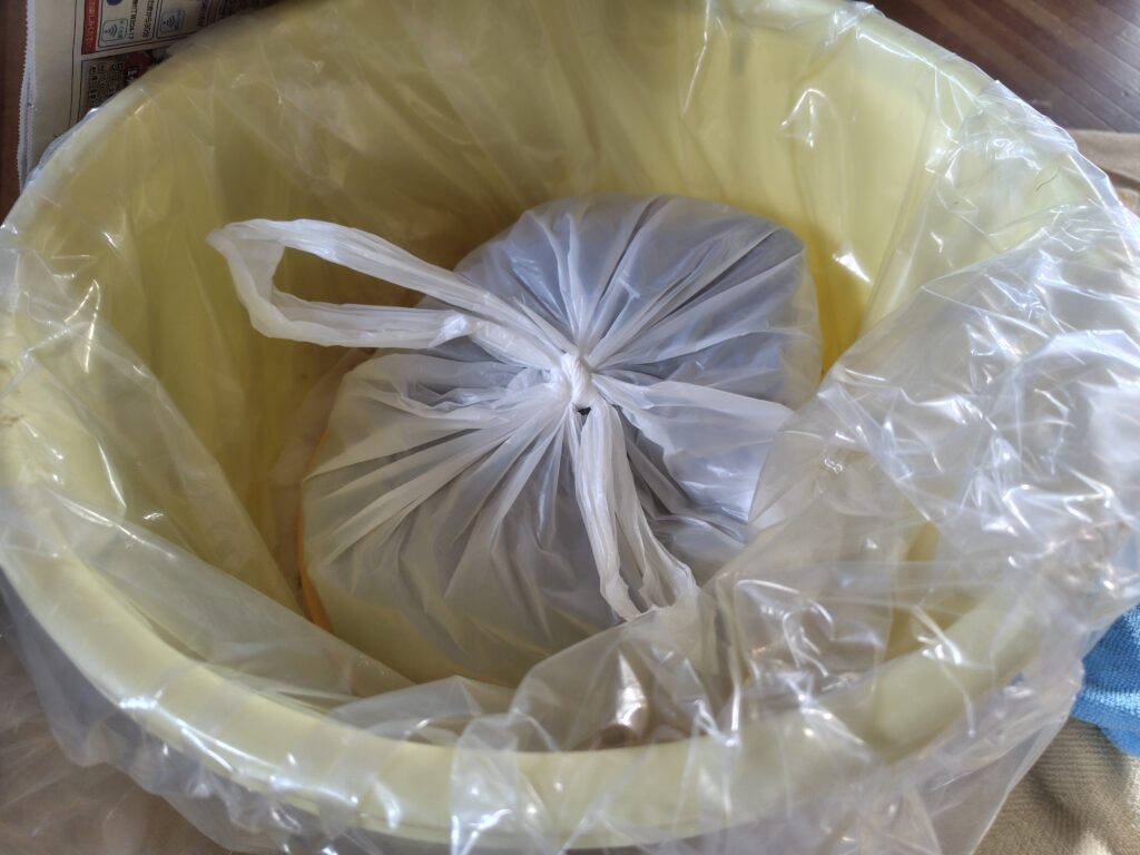 そこら辺に落ちていた5kgの石を洗って干し、念のため袋に入れたものを重石に