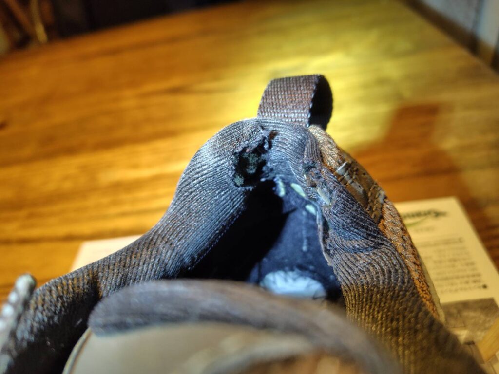 脱着時の摩擦で擦り切れた、かかとの穴が気になってきたので修理をしてみた