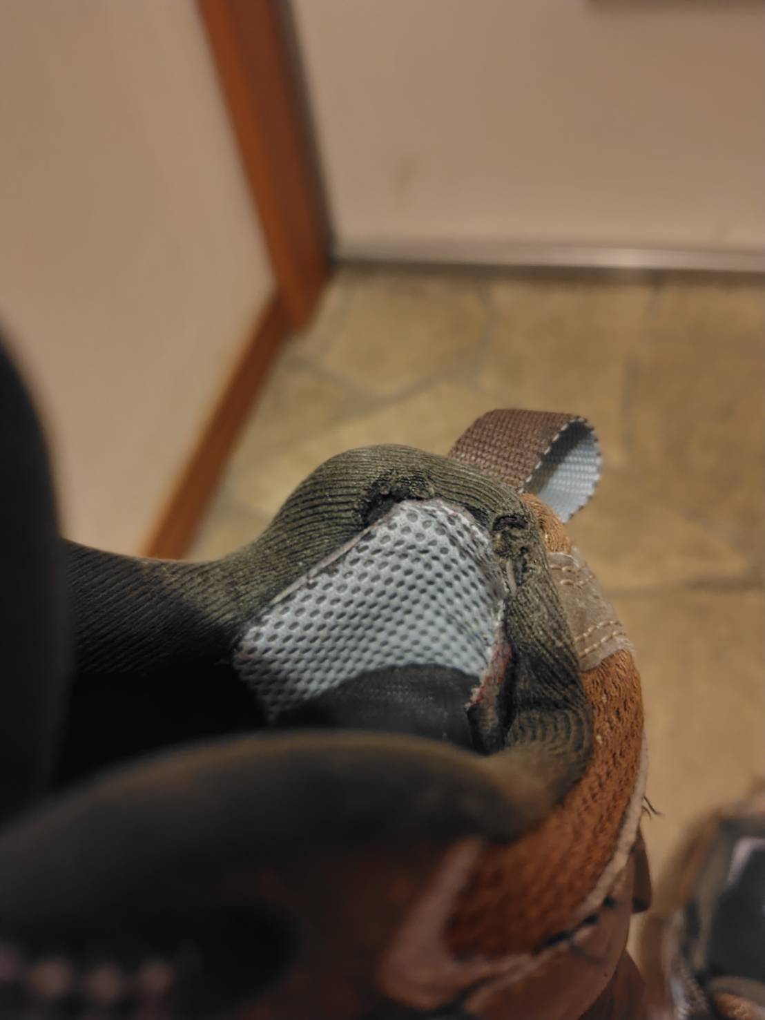 脱着時の摩擦で擦り切れた、かかとの穴が気になってきたので修理をしてみた